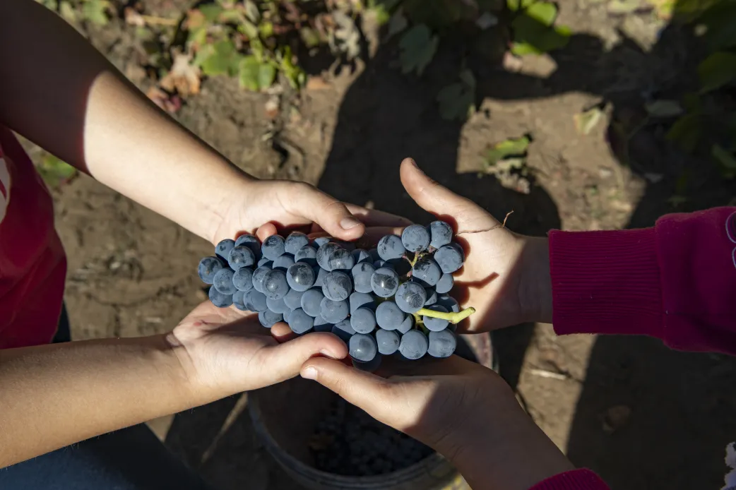 Durante a manhã, os alunos do 4.º ano da Escola Básica de Mansores partiram à descoberta do mundo rural e das tradições vitivinícolas. A caminhada iniciou-se na escola, passando pelo PR11 – Trilho dos Moinhos da Barrosa, num percurso de cerca de 2 km. Pelo caminho, os participantes aprenderam, observaram a paisagem e respiraram o ar puro deste território. À chegada ao campo, os pequenos ‘meteram mãos-à-obra’ e deu-se início à vindima. Com tesoura na mão e cesto ao ombro, ajudaram a colher os cachos maduros das uvas. Recriaram o tradicional pisar das uvas, numa dorna disponibilizada para o momento e, assim, promoveram uma autêntica viagem no tempo, que arrancou muitos sorrisos e gargalhadas! A manhã terminou com uma merenda no campo, para repor energias antes do regresso à escola.